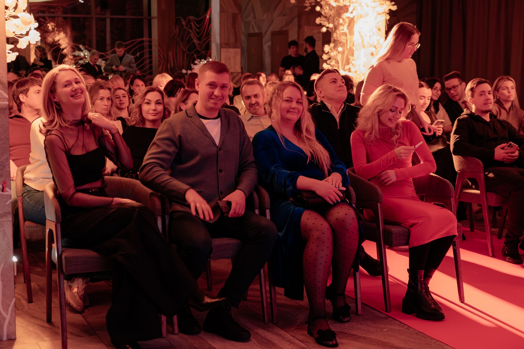 В официальной части были подведены итоги года: представлены рейтинги телеканалов, срез целевой аудитории, анонсированы премьеры и продолжения популярных шоу и сериалов, которые позволяют ТНТ сохранять лидерство по доли телесмотрения в возрасте 14-44.